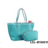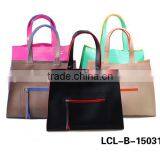 LCL-B1503161 Shining Pvc pu bi Color Customized Fashion Lady Travel Weekend Tote Hand Bag