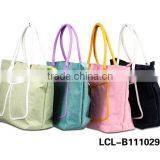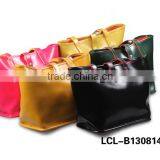 LCL-B1309021 Shining Pvc pu bi Color Customized Fashion Lady Travel Weekend Tote Hand Bag
