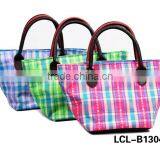LCL-B1308281-L Shining Pvc pu bi Color Customized Fashion Lady Travel Weekend Tote Hand Bag