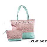 LCL-B1504072 Shining Pvc pu bi Color Customized Fashion Lady Travel Weekend Tote Hand Bag