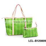 LCL-B1412125-L Shining Pvc pu bi Color Customized Fashion Lady Travel Weekend Tote Hand Bag