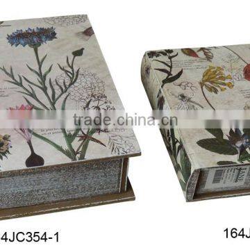 164JC354-1-2 Custom Design Floral Wood Book Box Sets Home Decorative Book Boxes Home Goods