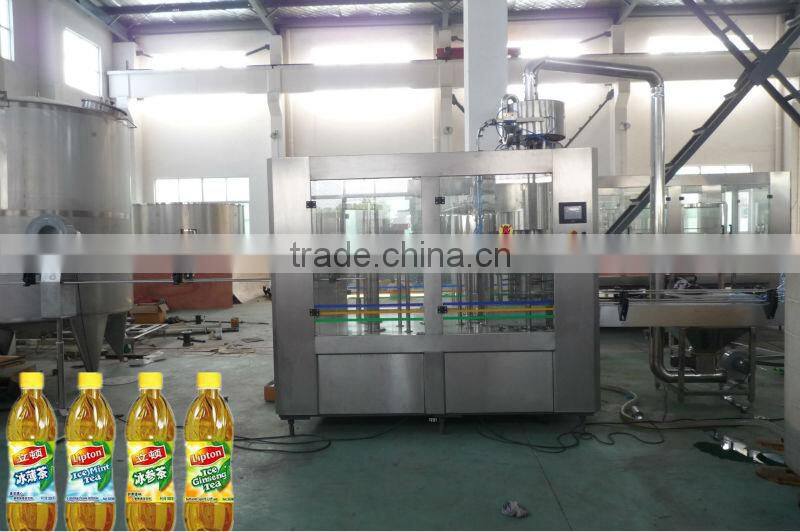 RCGF18-18-6 integrates washing, filling, capping into one unit, It is applied to fill hot frult juice. Tea and other beverage into thermal proof PET bottle by changing few parts. This equipment can realize to asepsis filling as it equipped with constant temperature controlling system.