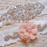 Bridal Garter Belt,Rhinestone Applique Garter,Blush Lace Garter Belt
