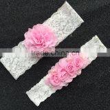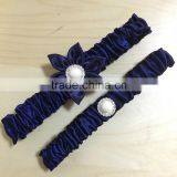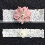 Sweety Pink Chiffon Flower Wedding Garter With Pearl Embellishment,Custom Color Blue Wedding Garter