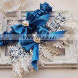 Royal Blue Satin Ribbon Wedding Garter Set,Vintage Imperial Lace Garter