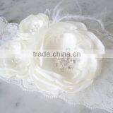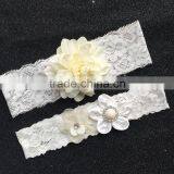 Chaste Fabric Flower Wedding Garter Set,Three White Flower Bridal Leg Lace Garter