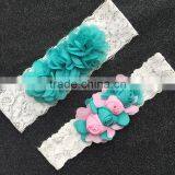 Chiffon Rose Lace Wedding Garter,Green Wedding Bridal Garter