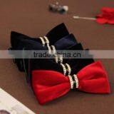 High Quality Velvet Bow Tie For Men's Suit,Soft Fabric Neck Tie With Rhinestone Center