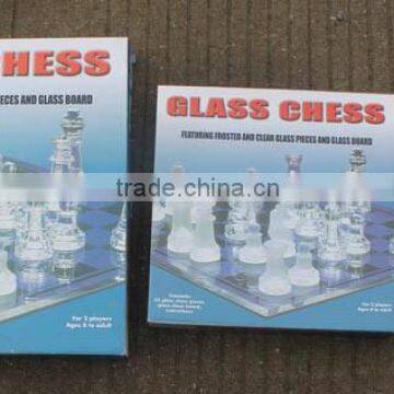 One full glass chess set included 2 colors(16pcs/color) of chess piece, one chess board in bubble packing or wooden box.