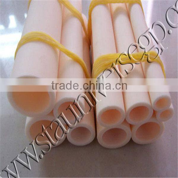 The Alumina ceramic tube are constructed of pure 99.7% Al2O3 that has superior gas and vacuum tightness and excellent insulating properties even at elevated temperatures. The alumina ceramic tube/rod/bar is an ideal wear-resistance material for delivering the sand, mine, ash dregs and molten aluminium, has excellent conductivity, high machinery strength and high temperature resistance, can resist to the acid, high temperature, corrosion and static electricity. Al2O3 is the most important technical ceramic material. It is characterized by high hardness, high compressive strength and corrosion resistance even at high temperatures. Through the content of Al2O3 in the material,these properties can be tailored to the application of customer. Other material like Mullite, Zirconia, Silicon Carbide, Silicon Nitride bonded Silicon Carbide is also available.