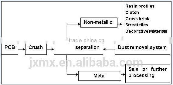The waste electrical PCB recycling plant is suitable for all types of PCB, through the ‘broken’ process, the Dry wind separation, metal and nonmetal can be completely separated with more than 95% recovery rate, no dust, low noise, simple operation, process automation, Environmental protection, is the best solution for PCB recycling.