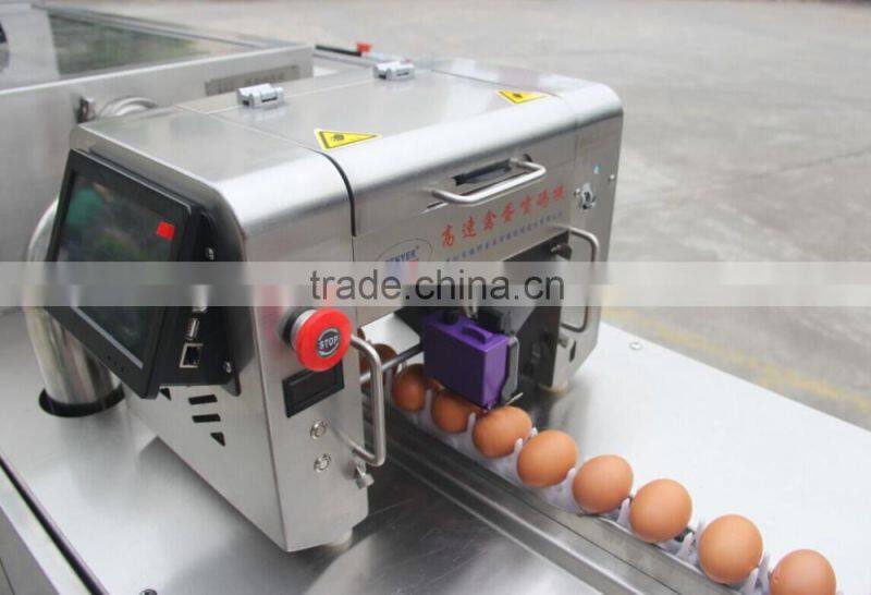 Eggs will be printed by cartridge egg printing machine, during the printing procedure the position where code is printed is in the middle of eggs (between the bigger head and the smaller head), to print company name, brand name, production date, expiration date, batch number etc.