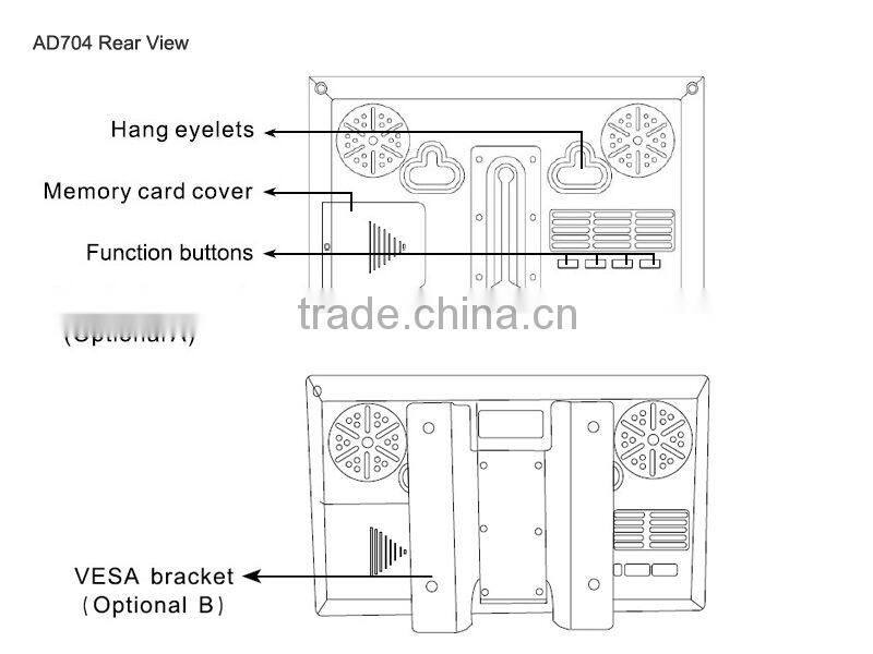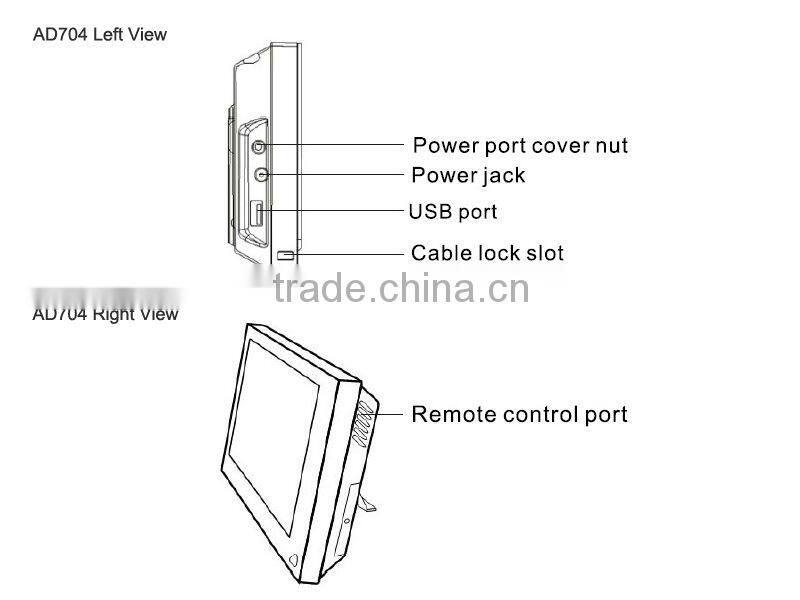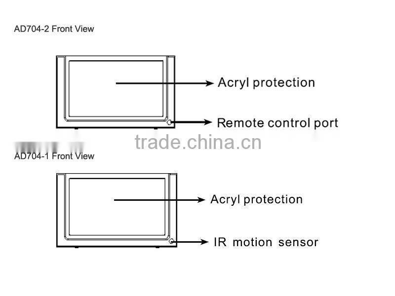 1. Play mp4 movie, mp3 music and digital photos; Built-in 7 inch TFT LCD screen, with Acryl protection; easy-to-install on car and taxi