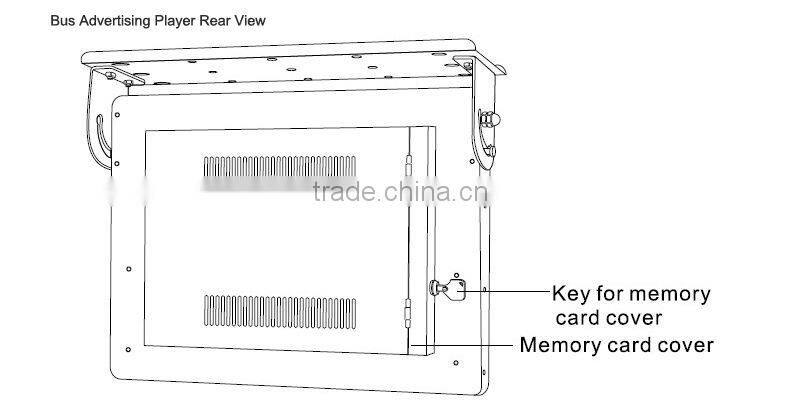 15inch bus advertising player, easy to install on bus ceiling.