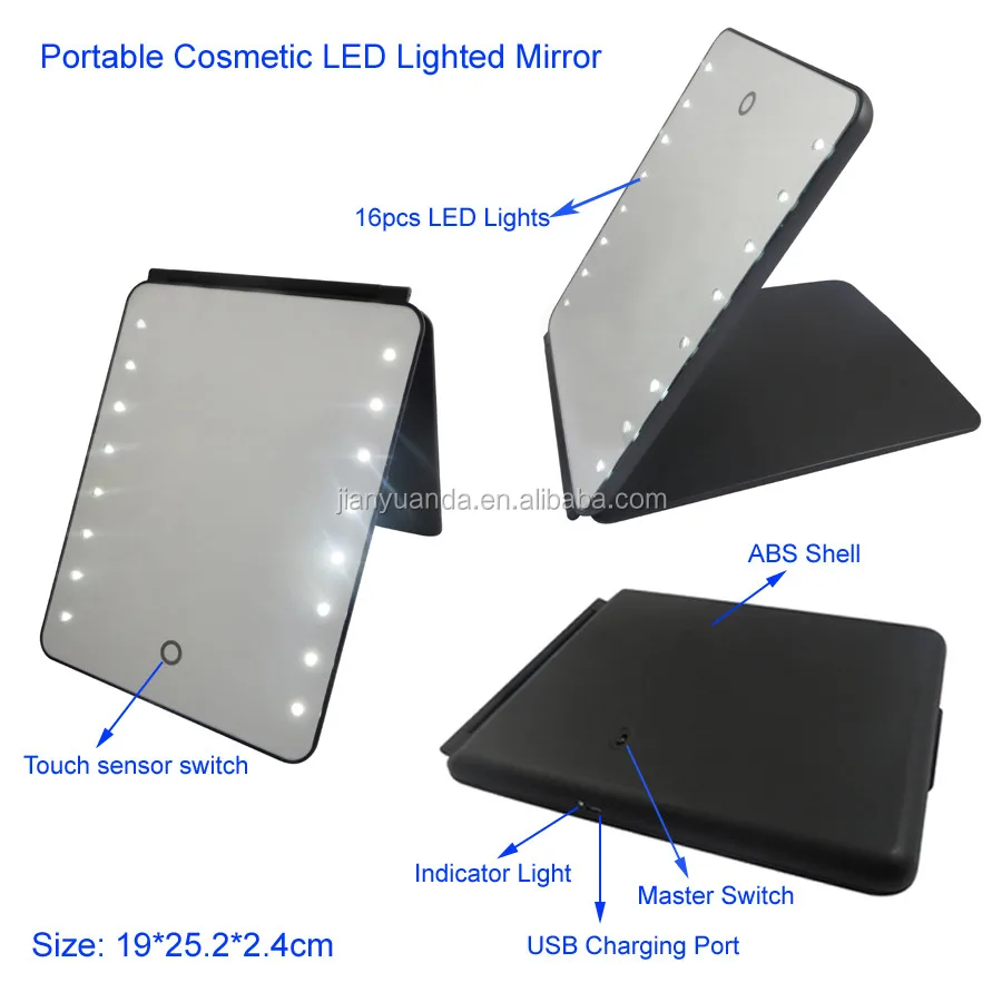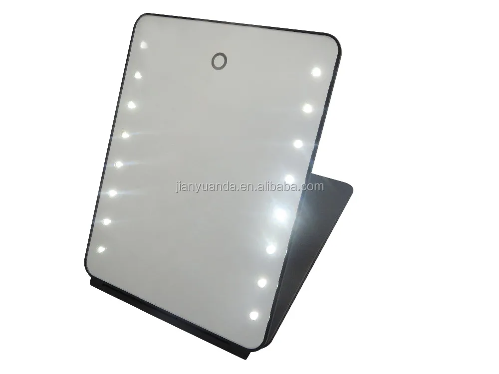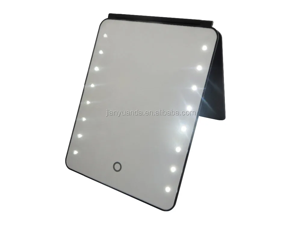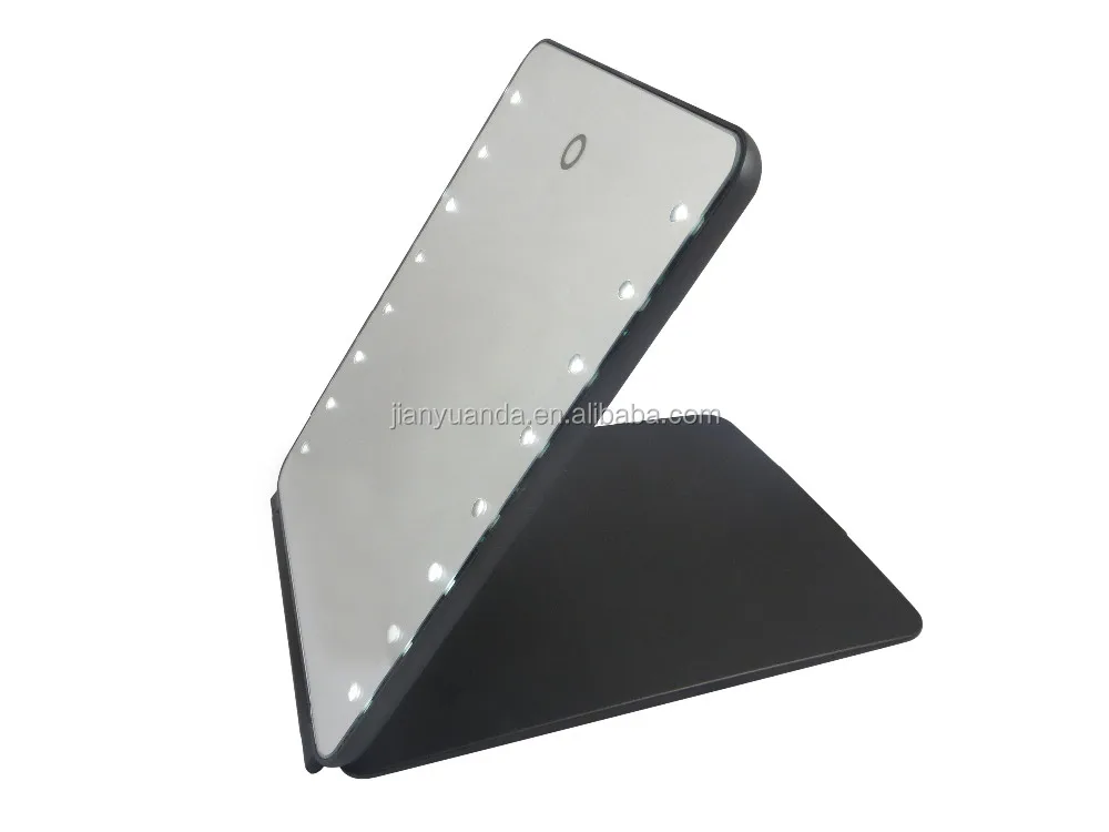* IPAD foldable traveling cosmetic mirror, super thin design, built-in 16pcs LED lights, suit for you makeup in darkness.
