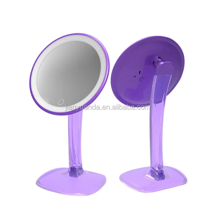 Round Plastic Two Way Vanity Lighted Bedroom Table Mirror With Magnifying Supplier's Choice