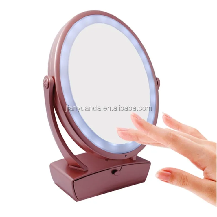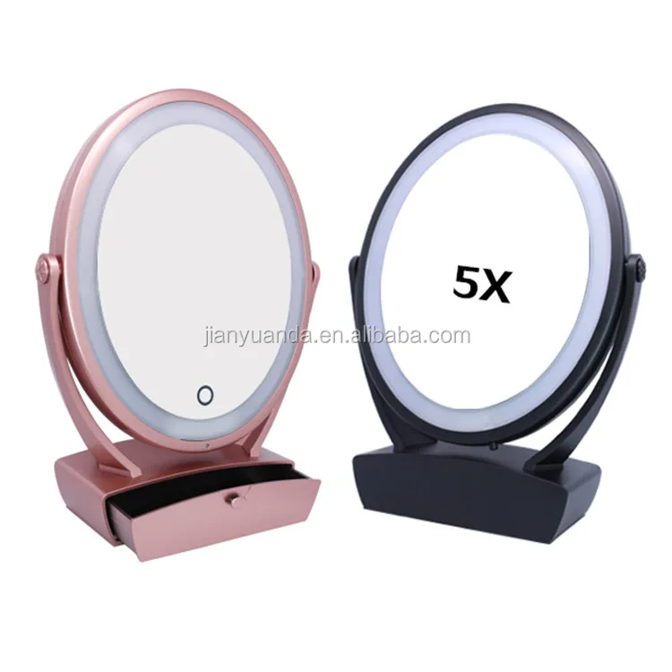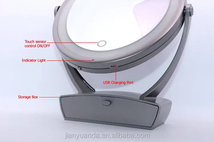 Rechargeable 5X magnifying touch sensor LED mirror with organizer