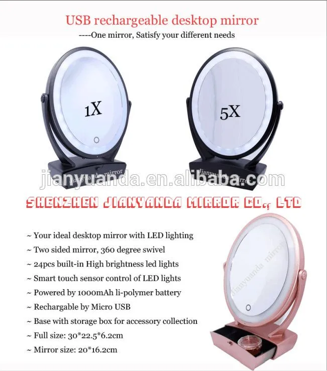 * Brand new rechargeable lighted table mirror with organizer as base, convenient for collecting small items.