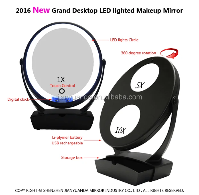 * Brand new rechargeable lighted table mirror with organizer as base, convenient for collecting small things.