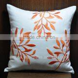 Orange Leaf Embroidered Linen Cushion Cover, Pillowcase