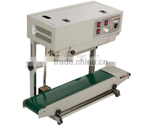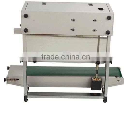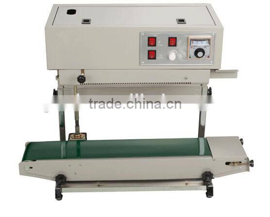 FR-900V series continuous film sealing machines finish continuous carrying, sealing and printing in one operation. The machine can be made horizontally, vertically or with stand feet. It adopts electronic constant temperature mechanism and stepless speed regulating transmission motor. It can seal plastic film in various kinds of materials.