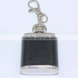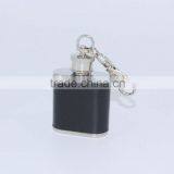 1oz Mini Stainless Steel Hip Flask Flagon With Keychain With Leather Sleeve