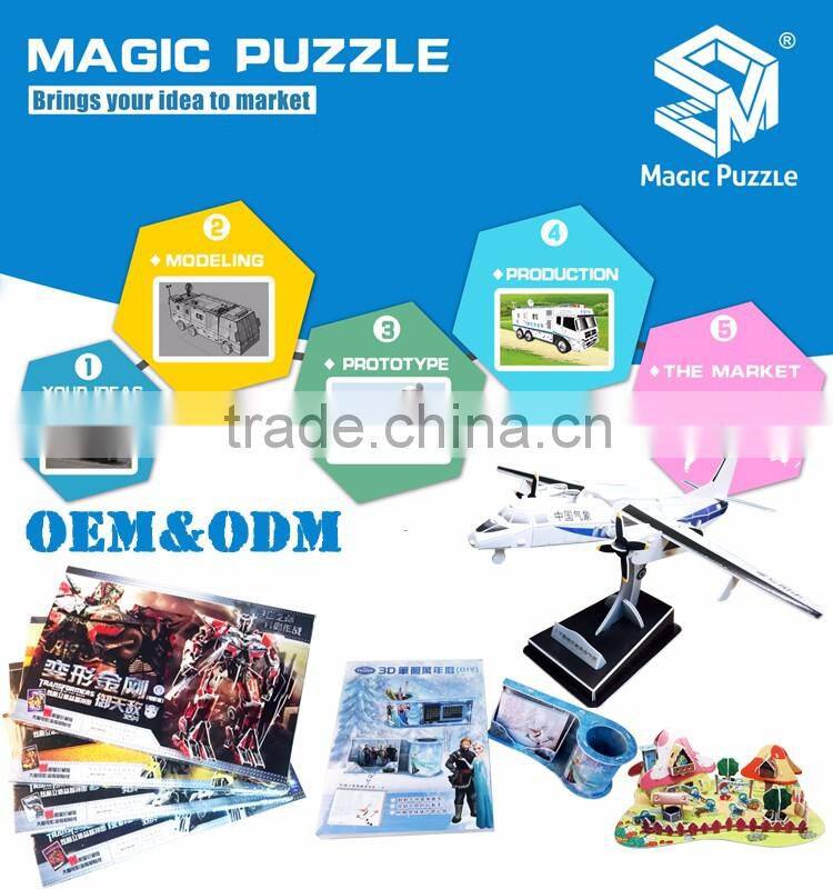 Magic Puzzle is a manufacturer who specialized in 3D cardboard jigsaw puzzle product designing, developing, producing and selling in China, with direct and indirect customers over 50 countries and regions including EU, USA, Russia, Southeast Asia, like Wal-mart, Carrefour, RT mart, Huarun, Wumart and TRU etc.