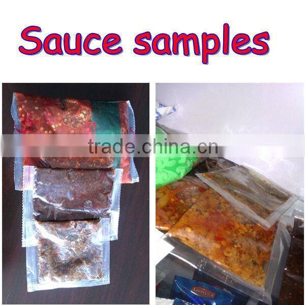 1.Automatically measuring,filling,sealing,counting,printing code,gasing,venting and packing sauce materials.