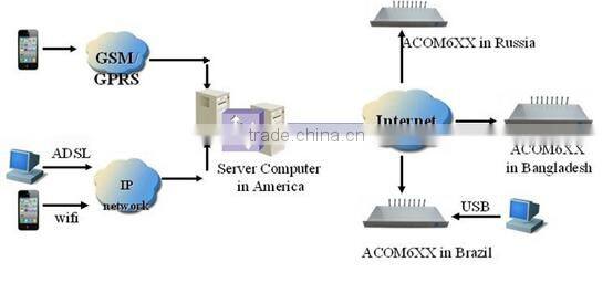 The ACOM6xx is a modem pool for bulk SMS and MMS, based on the Internet Protocol technique. The feature of the remote management and control makes modem pools in different areas and countries conveniently to send bulk SMS by a same device with controlling software.
