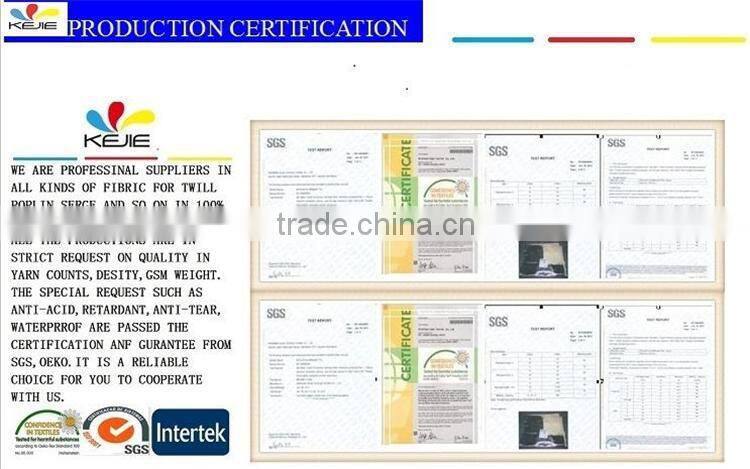 Xinxiang kejie is atrad and manufacrure specializes in the deuelopment and research,produce and sale inthe fabrics and muti-purposed special protection fabrics.the company owns seueral printing, complete inspectionfacilities and winsa goods quantity in production. There are maily seven serious productions:fire retardant,anti-static,anti-acid&alkali, workwear, flannel,camouflage and corduroy. | |