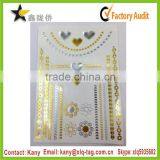 Customized Fashionable Hot Sale Metallic Jewelry Tattoo Temporary Tattoo Sticker Foil/gold Flash Tattoo Quality Choice