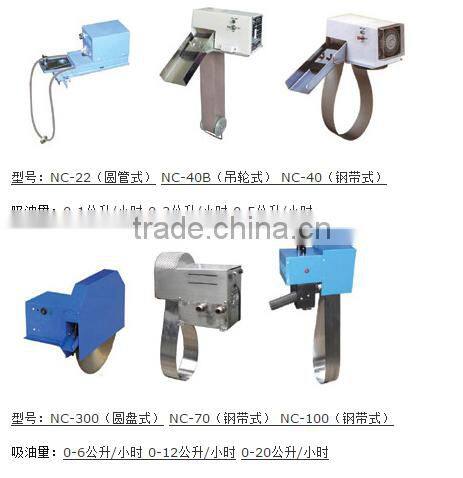 Belt – oil skimmers is one of the most reliable and economical equipment removing liquid surface floating oil , low electric consumption ,no need any consumable, can effective remove all kinds of floating oil ( contain machine oil,kerosene,diesel oil ,lubricating oil,plant oil and other liquid specific weight less than water, no matter the water surface oil layer thick or thin , all can absorb) , can make oil-water separation and waste oil reuse, its principle is adopt different gravity and surface tension etc characteristic, when the oil skimming belt pass water surface can absorb and take away the surface all kinds of floating oil.