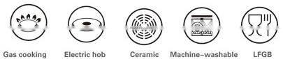 | Cookware is suitable for the following element types | ![]() |