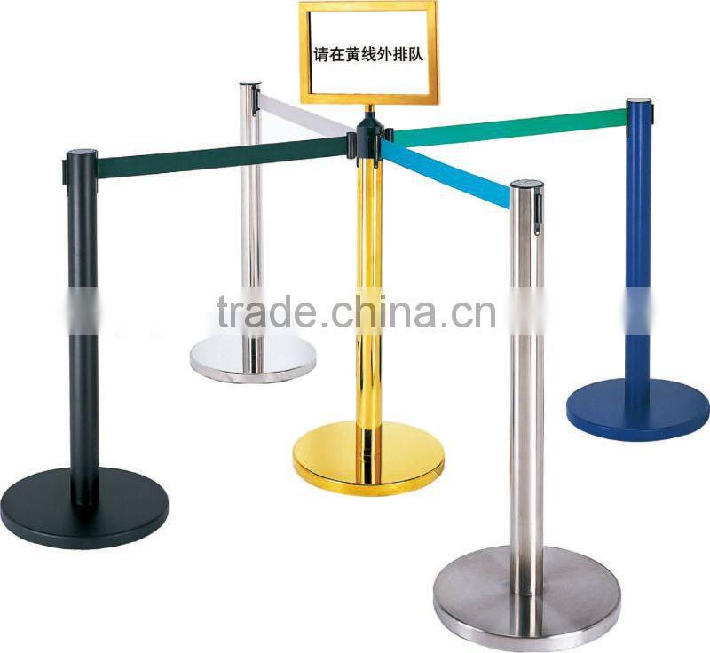 Stainless Steel Mirror Polished Queue Barrier Retractable Belt Stanchion