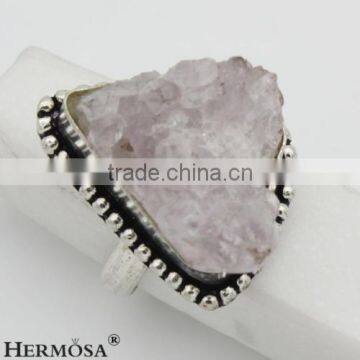 Nature Stone White Druzy Triangle Shape Single Stone Finger Ring For Party Ocassion Stone Finger Ring