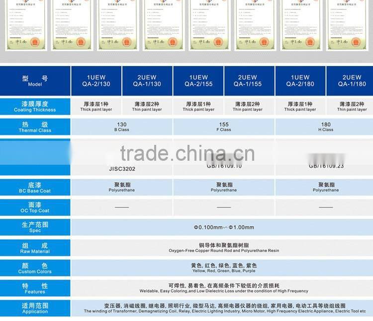 Solderable Polyurethane Enamelled Copper Wire Overcoat With Polyamide, Class 180