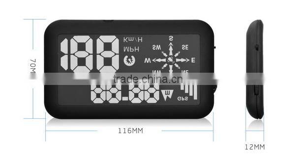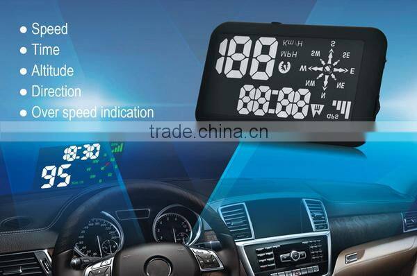 This high-tech easy to use Car Head-Up Display is plug-and-play and can be easily installed into cars allowing the vehicle information (speed, time, and altitude, direction) to be projected onto the windshield in front of driver. This allows the driver to focus on the road ahead while still being informed about the vehicle speed, time and direction etc.