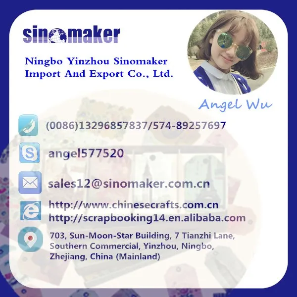 Sinomaker International Corp Ltd is a professional supplier of scrapbooking, DIY kit, Stationery and promotional gifts in Ningbo, China. With about 10 years' development, Sinomaker has earned high appreciation from clients all over the world. With the guide line of 4Bs, Better Service, Better Quality, Better Price, Better Innovation, Sinomaker is waiting for you to gain win-win cooperation.