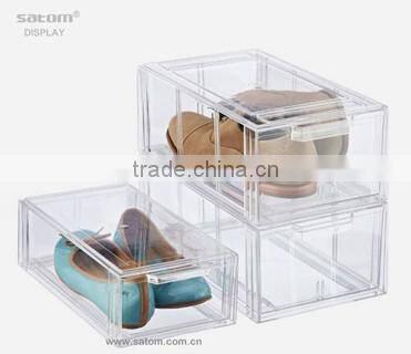 Satom can provide the acrylic shoe box, acrylic shoes display box, clear shoes case, shoes display storage , sport shoes case.