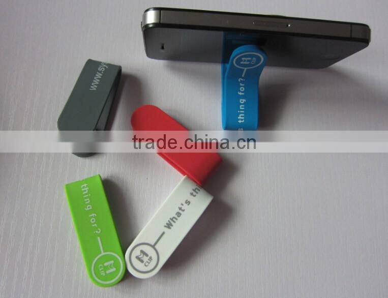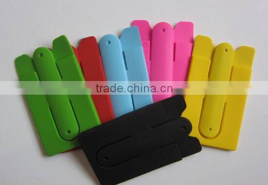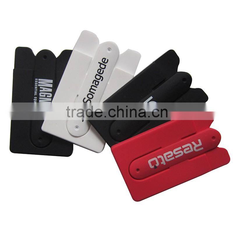 This promotional silicone cell phone wallet with stand is made of 100% eco-friendly silicone. Adheres to back of your phone with strong adhesive. It also doubles as a phone stand. Features a secure snap button closure. Perfect for carrying identification, room keys, cash or credit cards.