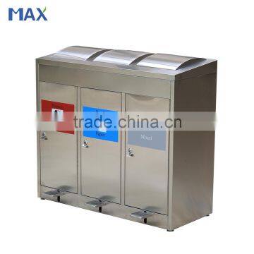 Outdoor Public 3 Compartments Stainless Steel Foot Pedal Bin,trash Bin,garbage Bin