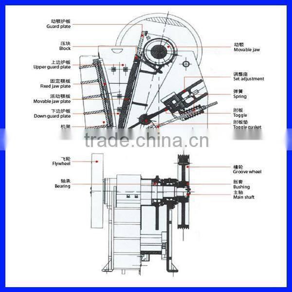 Motor passes motive power to eccentric shaft end's pulley, making the eccentric shaft under lead of motor do rotatory movement according to the demanded speed rated; Dynamic jaw head propelled by the eccentric shaft's eccentric force makes regular fixed track compressive to break the materials.