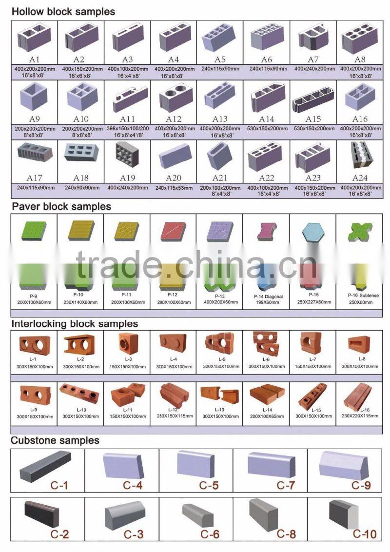 QT4-15 concrete bricks manufacturing machine Choose your block design: