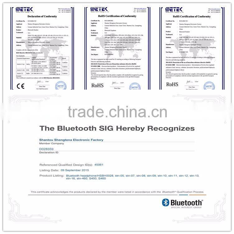 Shengtena Electronic,ISO9001:2008 Audit Factory, has been in Bluetooth Earphone、 Headphone Development and Marketing for more than 15 Years.
