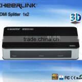 Hot Sell CHEERLINK Full 1080P HD/3D HDMI Splitter 1x2 / Remote Control/black