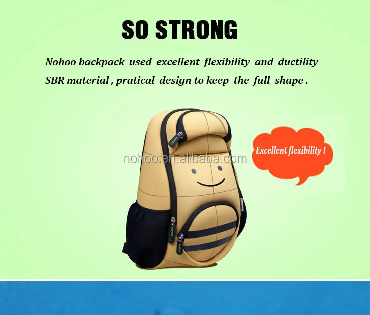 Nohoo backpack is one of most popular and newest design products for girls and boys in the world. All backpack bag is made of 100% friendly neoprene with high quality. Shoulder strap could be effectively to reduce the stress on kids shoulders. There different size for choose to students and children of different ages. This fashion and functional school bag, kids deserve it.