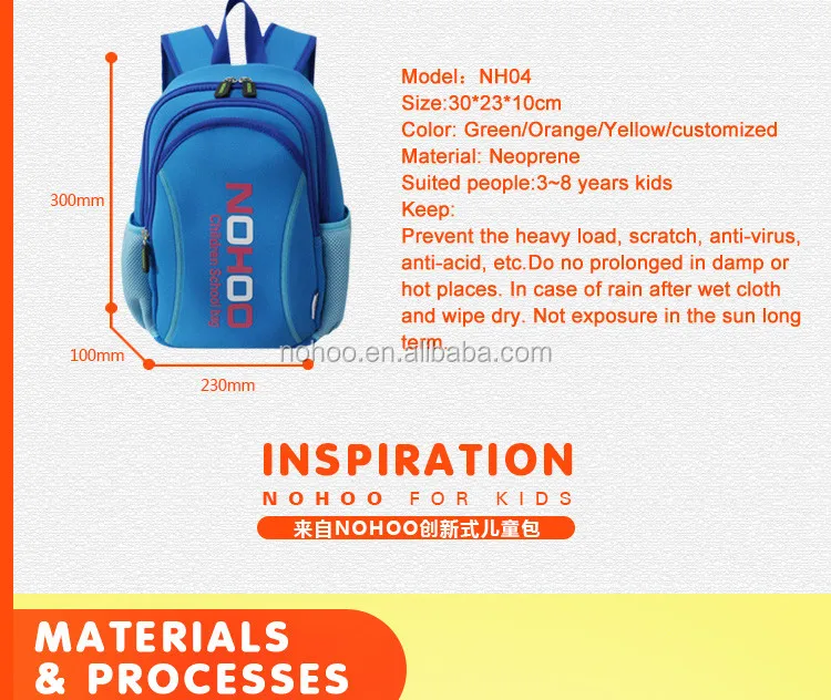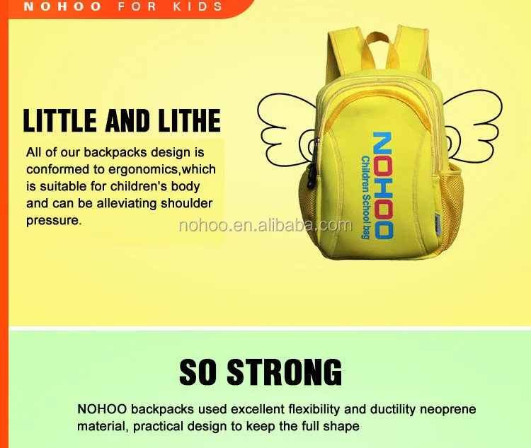 Guangzhou NOHOO Bags Co., Ltd. was founded in 2010 and located in Huadu district, Guangzhou city in China, we're the first factory to use neoprene as the material of children bag in China. We focus on children bag, our materials are environmental friendly, we had passed ROHS, REACH and CPSIA test. We consistently insist innovation and excellent technology to provide professional product experience for children, try our best to become the leader of children bag in the world.Adhering to the credo of Sincerity and Credit, we always supply products with Competitive Prices, Excellent Quality and Quick Shipment and provide perfect services for clients in the whole process. We warmly welcome friends from all over the world to communicate and negotiate and wish friendly long-term business relationships with you in the near future.