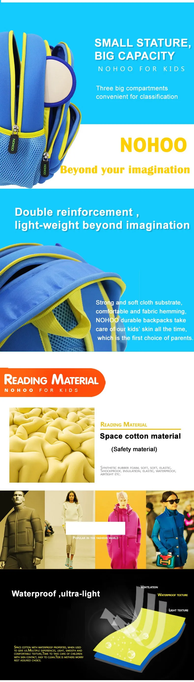 Guangzhou NOHOO Bags Co., Ltd. was founded in 2010 and located in Huadu district, Guangzhou city in China, we're the first factory to use neoprene as the material of children bag in China. We focus on children bag, our materials are environmental friendly, we had passed ROHS, REACH and CPSIA test. We consistently insist innovation and excellent technology to provide professional product experience for children, try our best to become the leader of children bag in the world.Adhering to the credo of Sincerity and Credit, we always supply products with Competitive Prices, Excellent Quality and Quick Shipment and provide perfect services for clients in the whole process. We warmly welcome friends from all over the world to communicate and negotiate and wish friendly long-term business relationships with you in the near future.