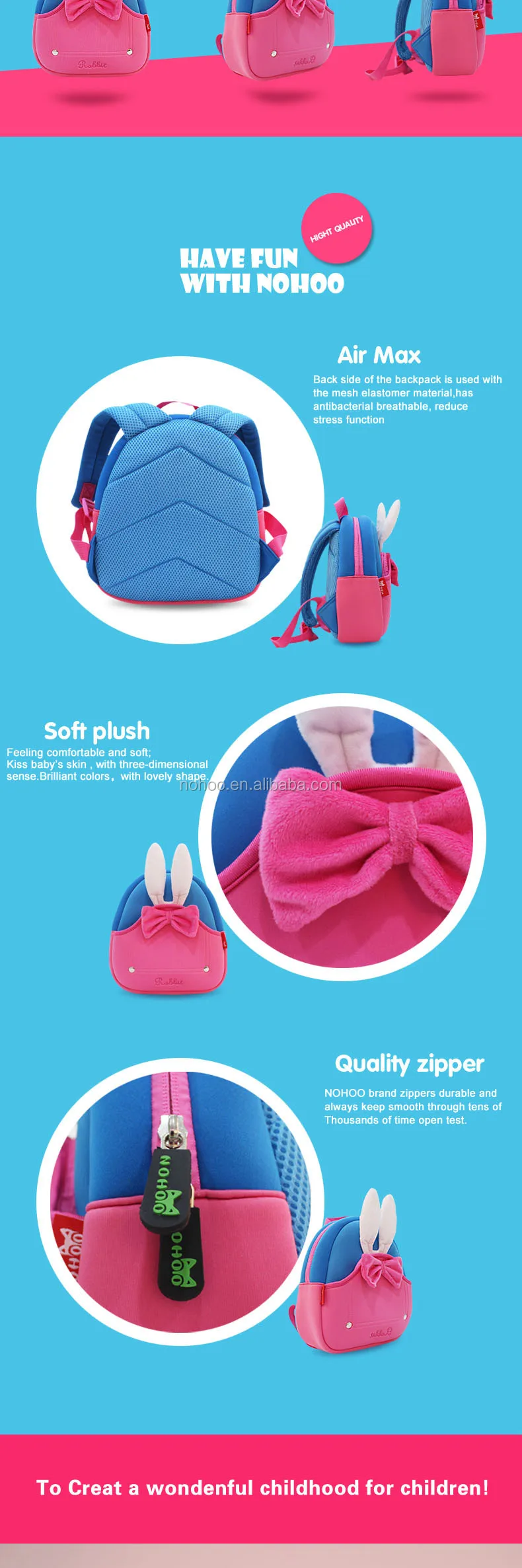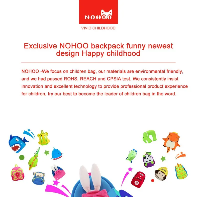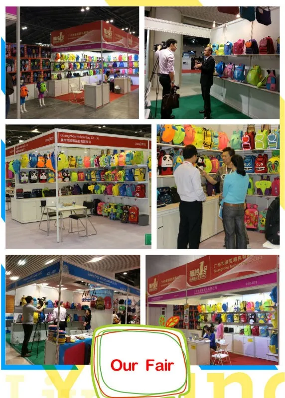 Guangzhou NOHOO Bags Co., Ltd. was founded in 2010 and located in Huadu district, Guangzhou city in China, we're the first factory to use neoprene as the material of children bag in China. We focus on children bag, our materials are environmental friendly, we had passed ROHS, REACH and CPSIA test. We consistently insist innovation and excellent technology to provide professional product experience for children, try our best to become the leader of children bag in the world.Adhering to the credo of Sincerity and Credit, we always supply products with Competitive Prices, Excellent Quality and Quick Shipment and provide perfect services for clients in the whole process. We warmly welcome friends from all over the world to communicate and negotiate and wish friendly long-term business relationships with you in the near future.